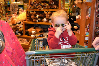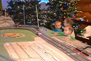 For family night one Sunday night we all loaded the boys up and took them to the Bass Pro shop to see Santa and ride the Caresal ride. They all loved it. A big hit as well was the race car track :)
